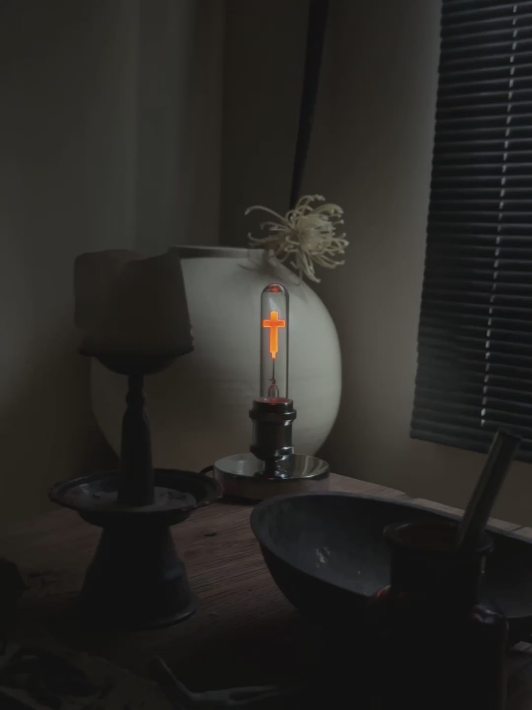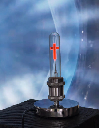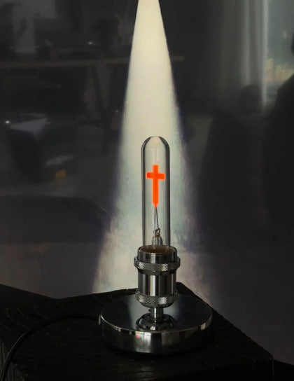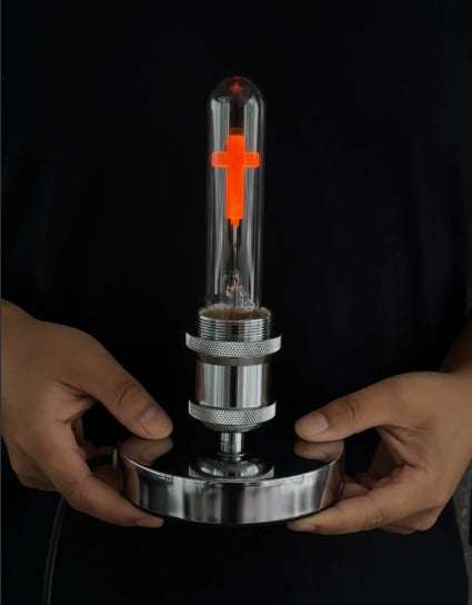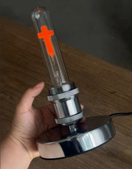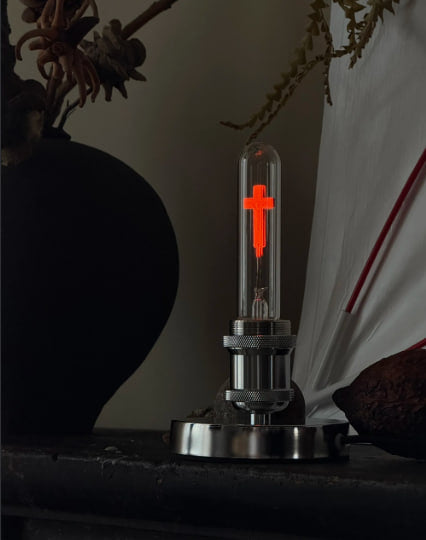 The Nexus Crux Light blends minimalist modern design with striking visual appeal—crafted with a transparent glass tube encasing a bold orange cross light element, paired with a sleek metallic base. Its dark-tone-friendly glow creates distinct light layers, functioning as both a functional illuminator and a statement art piece, seamlessly fitting modern minimalist, industrial, or contemporary home/office spaces.